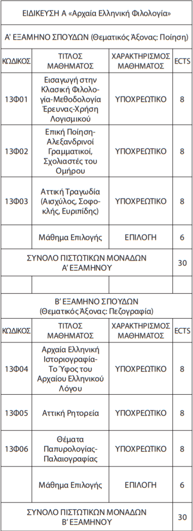 2. 13ΦΕ02: Αττική Κωμωδία (Αριστοφάνης-Μέση Κωμωδία-Μένανδρος) (6 ECTS) [προσφέρονται στο Α’ εξάμηνο σπουδών]