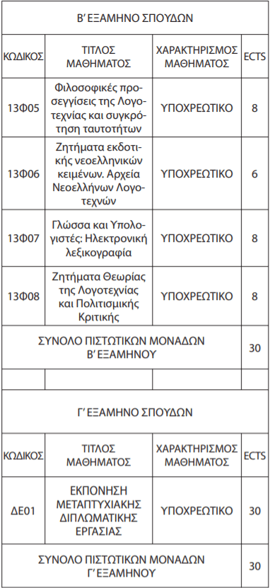 Το Πρόγραμμα Μεταπτυχιακών Σπουδών «Αρχαία και Νέα Ελληνική Φιλολογία» με Ειδίκευση: «Νέα Ελληνική Γλώσσα και Φιλολογία», που οργανώνει το Τμήμα Φιλολογίας του Πανεπιστημίου Πελοποννήσου, καλεί τους ενδιαφερομένους να υποβάλουν αίτηση για την κάλυψη τριάντα πέντε (35) θέσεων μεταπτυχιακών φοιτητών. Οι σπουδές, οι οποίες διαρκούν τρία (03) ακαδημαϊκά εξάμηνα, οδηγούν στο αντίστοιχο Δίπλωμα Μεταπτυχιακών Σπουδών (Δ.Μ.Σ.) (Φ.Ε.Κ. 3123/τ. Β΄/31.07.2018).