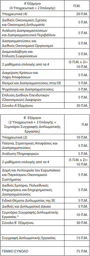 Το σύνολο των πιστωτικών μονάδων του προγράμματος είναι εβδομήντα πέντε (75) πιστωτικές μονάδες (Π.Μ.).