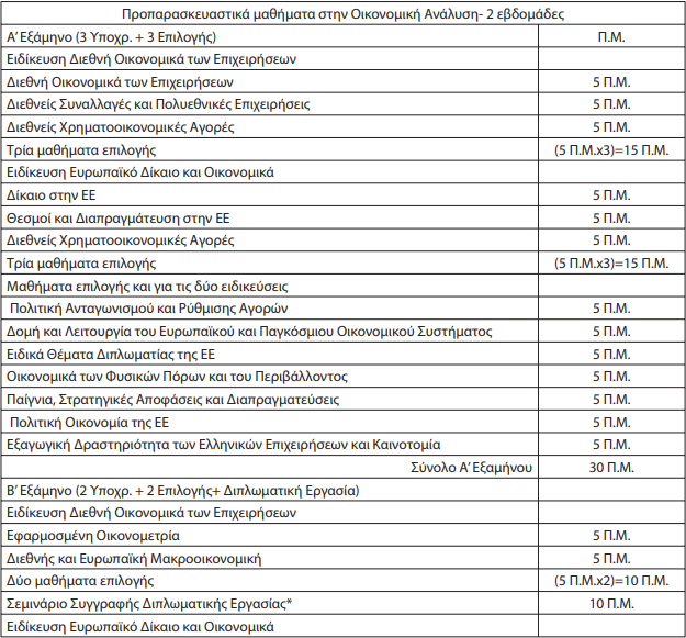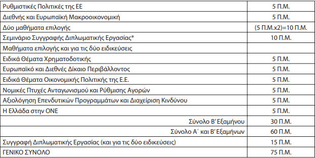 Β. Ευρωπαϊκό Δίκαιο και Οικονομικά [European Law and Economics]Στο πλαίσιο του Π.Μ.Σ. λειτουργούν δύο τμήματα σπουδών: