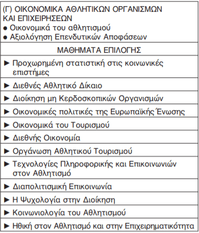 (α) Μάνατζμεντ αθλητικών οργανισμών και επιχειρήσεων,