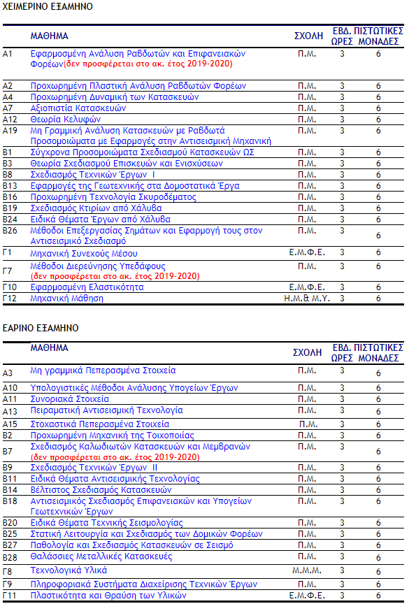 Ο Τομέας Δομοστατικής της Σχολής Πολιτικών Μηχανικών του ΕΜΠ σε συνεργασία με τον Τομέα Γεωτεχνικής της ιδίας Σχολής και με την σύμπραξη των Σχολών Εφαρμοσμένων Μαθηματικών και Φυσικών Επιστημών, Ηλεκτρολóγων Μηχανικών & Μηχανικών Υπολογιστών και Μηχανικών Μεταλλείων-Μεταλλουργών ΕΜΠ, καλεί τους ενδιαφερóμενους να υποβάλουν αίτηση συμμετοχής στο Διατμηματικó Πρóγραμμα Μεταπτυχιακών Σπουδών (ΔΠΜΣ) «Δομοστατικóς Σχεδιασμóς και Ανάλυση των Κατασκευών» για το ακαδημαϊκó έτος 2020-2021.