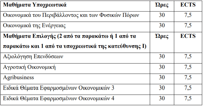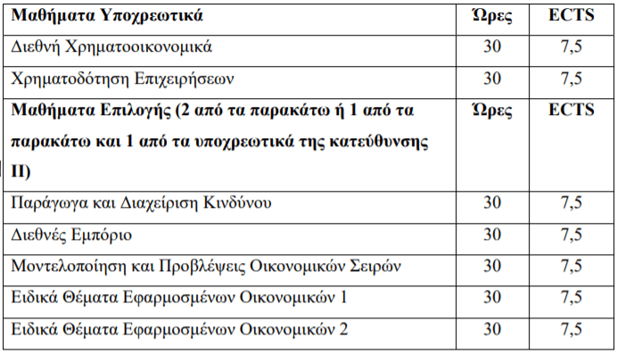 Κατεύθυνση Ι: Διεθνή Οικονομικά και Χρηματοοικονομικά - Κατεύθυνση ΙΙ: Οικονομικά του Περιβάλλοντος και των Φυσικών πόρων  - Δ) Περίοδος εκπόνησης της διπλωματικής εργασίας (καλοκαιρινή περίοδος):