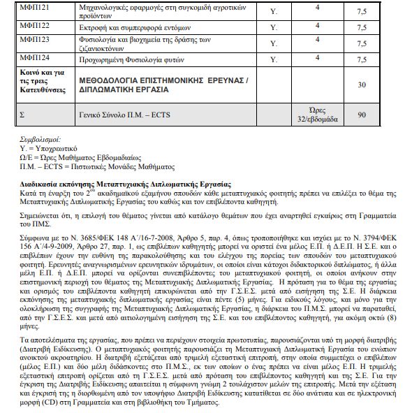 ➢ «Σύγχρονα Συστήματα Παραγωγής και Διαχείρισης Φυτικού Κεφαλαίου»Σκοπός του ΠΜΣ είναι η ανάπτυξη έρευνας και μεταπτυχιακής εκπαίδευσης υψηλού επιπέδου (2ου κύκλου σπουδών ΑΕΙ), στα επιστημονικά πεδία της εφαρμοσμένης Γεωπονικής Επιστήμης και Τεχνολογίας και ειδικότερα στα επιστημονικά πεδία της Φυτικής και Ζωικής Παραγωγής καθώς και της Αγροτικής Οικονομίας, με έμφαση την ανάπτυξη της Αγροτικής Επιχειρηματικότητας.