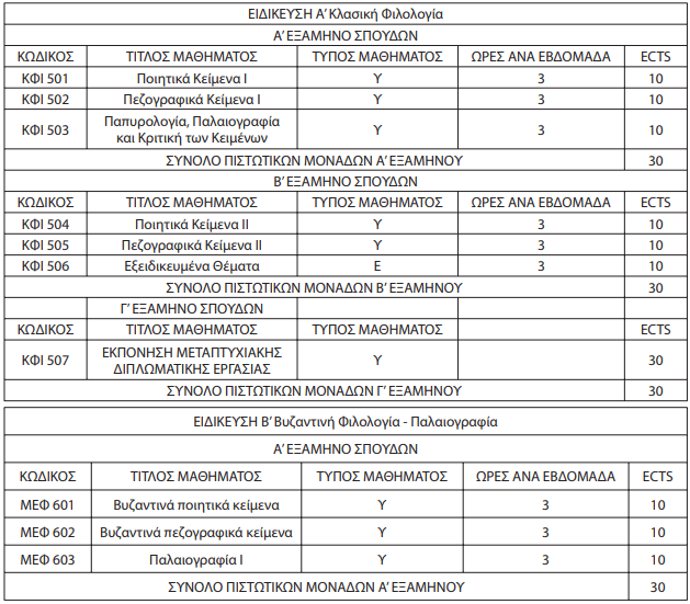 (Π.Μ.Σ.) με τίτλο «Κείμενα και Πολιτισμός» και τρεις ειδικεύσεις: