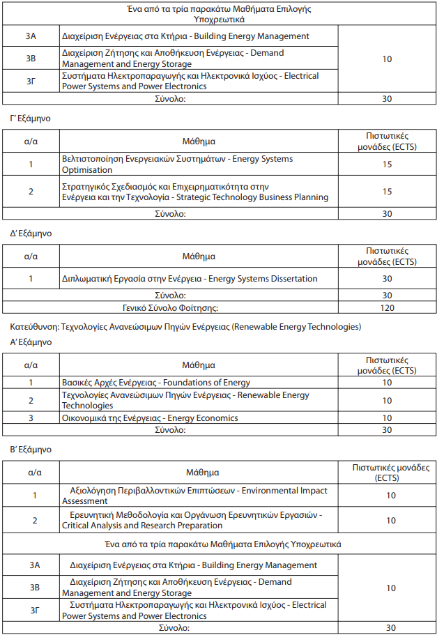 • Το εν λόγωΠΜΣ (συνέχεια και εξέλιξη του καθιερωμένου MSc in Energy)με την παρούσα πρόσκληση συγκροτεί το 30ο Τμήμα εκσυγχρονίζοντας διαρκώς τα μαθήματα που προσφέρει. Επιπλέον δίνει τη δυνατότητα στους φοιτητές του, μετά τηv παρακολούθηση των σύγχρονων ενεργειακών μαθημάτων του πρώτου έτους, να προσαρμόσουν το πρόγραμμα σπουδών τους στα ερευνητικά και επαγγελματικά τους ενδιαφέροντα,επιλέγοντας στο δεύτερο έτος μεταξύ δύο κατευθύνσεων: