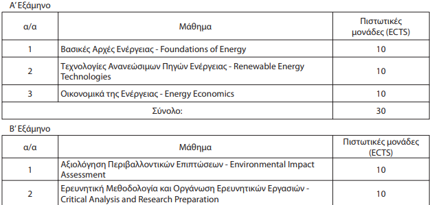 • Το εν λόγω ΠΜΣ (συνέχεια και εξέλιξη του καθιερωμένου MSc in Energy) με την παρούσα πρόσκληση συγκροτεί το 29ο Τμήμα εκσυγχρονίζοντας διαρκώς τα μαθήματα που προσφέρει. Επιπλέον δίνει τη δυνατότητα στους φοιτητές του, μετά τηv παρακολούθηση των σύγχρονων ενεργειακών μαθημάτων του πρώτου έτους, να προσαρμόσουν το πρόγραμμα σπουδών τους στα ερευνητικά και επαγγελματικά τους ενδιαφέροντα, επιλέγοντας στο δεύτερο έτος μεταξύ δύο κατευθύνσεων: