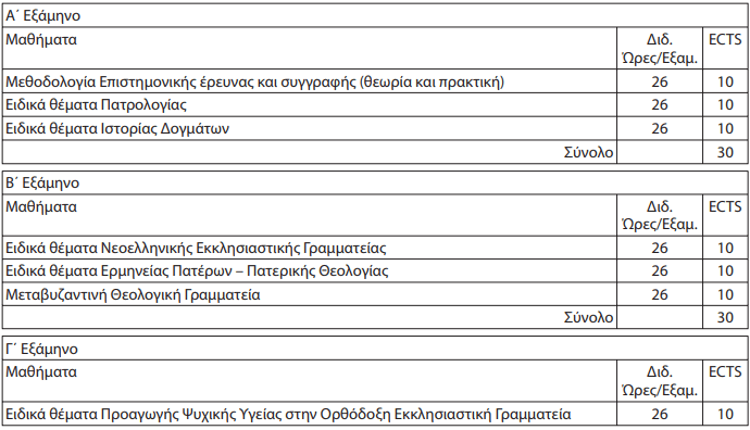 2. Ειδίκευση: Πατρολογία, Εκκλησιαστική Γραμματεία, Eκκλησιαστική Ιστορία, και Δογματική Θεολογία