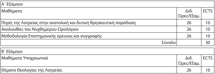 3. Ειδίκευση: Λειτουργική – Αγιολογία