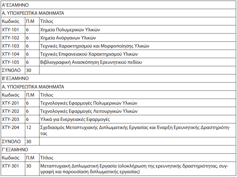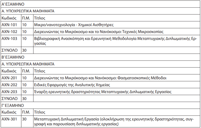 ii. Αναλυτική Χημεία και Νανοτεχνολογία.Στο ΠΜΣ γίνονται δεκτοί πτυχιούχοι Τμημάτων Θετικών Επιστημών, Επιστημών Υγείας, Γεωπονικών Επιστημών και Πολυτεχνικών Σχολών, Σχολής Περιβάλλοντος του Πανεπιστημίου Αιγαίου, συναφών Τμημάτων του Ελληνικού Ανοιχτού Πανεπιστημίου, Πανεπιστημίων της Ημεδαπής ή αναγνωρισμένων ομοταγών ιδρυμάτων της αλλοδαπής καθώς και πτυχιούχοι Τμημάτων Τ.Ε.Ι. συναφούς γνωστικού αντικειμένου. Αίτηση μπορούν να υποβάλλουν και τελειόφοιτοι των παραπάνω Τμημάτων Πανεπιστημίων και Τ.Ε.Ι. της ημεδαπής, υπό την προϋπόθεση ότι θα έχουν προσκομίσει Βεβαίωση Περάτωσης των Σπουδών τους το αργότερο μια ημέρα πρίν από την ημερομηνία συνεδρίασης της Συνέλευσης του Τμήματος Χημείας προς επικύρωση του πίνακα των επιτυχόντων. Στην περίπτωση αυτή αντίγραφο του πτυχίου ή του διπλώματός τους προσκομίζεται πριν από την ημερομηνία έναρξης του προγράμματος. Σε κάθε περίπτωση, οι επιλεγέντες θα πρέπει να προσκομίσουν όλα τα απαραίτητα δικαιολογητικά μέχρι τη λήξη των εγγραφών.