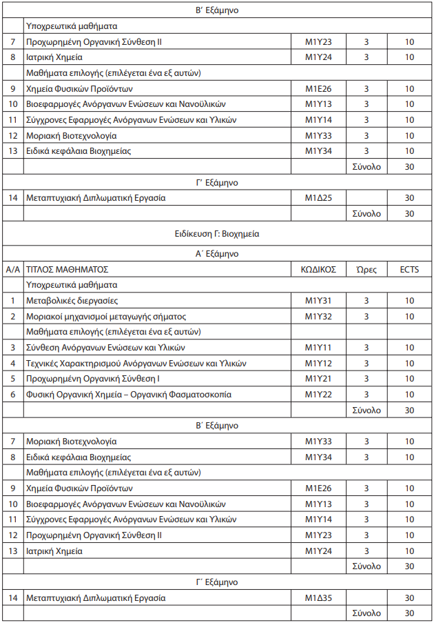 Ειδίκευση Γ «Βιοχημεία» 4Γ. ΔΙΑΡΚΕΙΑ ΣΠΟΥΔΩΝ ΚΑΙ ΔΙΔΑΚΤΙΚΕΣ MONAΔEΣ