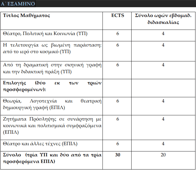 Α. Για την ειδίκευση: «Θεατρολογία»: