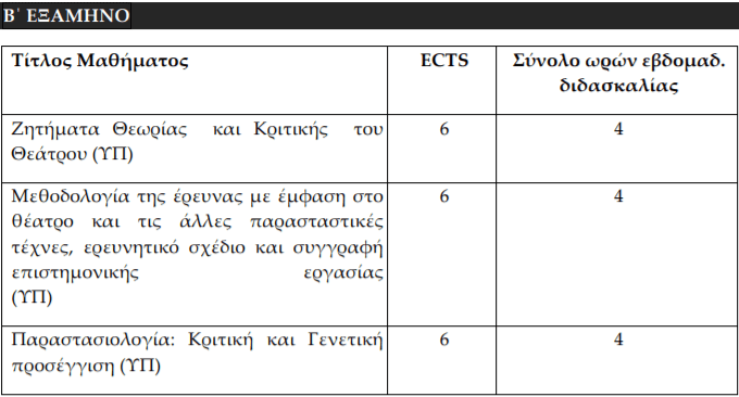 Β. Για την ειδίκευση: «Σκηνική Πρακτική: διδακτική και κοινωνικές εφαρμογές»:
