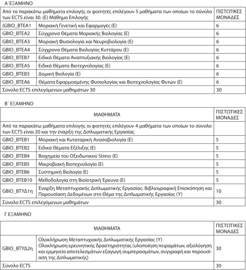 Το Πρόγραμμα Μεταπτυχιακών Σπουδών (ΠΜΣ) στοχεύει στη Μεταπτυχιακή εκπαίδευση πτυχιούχων των Τμημάτων Βιολογίας και άλλων συναφών επιστημών, σε τομείς αιχμής των Βιολογικών Επιστημών που έχουν άμεση σχέση με την ανάπτυξη της Βιολογικής Τεχνολογίας και της Περιβαλλοντικής Βιολογίας.
