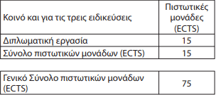 Η επίσημη γλώσσα διδασκαλίας του Π.Μ.Σ. είναι η Ελληνική και για τους φοιτητές του ΠρογράμματοςERASMUS η Αγγλική. Για την απόκτηση Μεταπτυχιακού Διπλώματος Ειδίκευσης (Μ.Δ.Ε.) πλήρους ή μερικής φοίτησης, ο φοιτητής οφείλει να συγκεντρώσει 75 πιστωτικές μονάδες (ECTS),από τις οποίες 60 αντιστοιχούν σε 12 μαθήματα, και 15 στη διπλωματική μελέτη. Σημειώνεται ότι η διπλωματική μελέτη αντιστοιχεί σε τρία μαθήματα. Η κατανομή των πιστωτικών μονάδων έχει γίνει σύμφωνα με το άρθρο 14 του ν. 3374/2005 (Α΄189) (Όπως ορίζει η παρ. 1 του άρθρου 45 του ΣΤ΄ κεφαλαίου του ν. 4485/2017).
